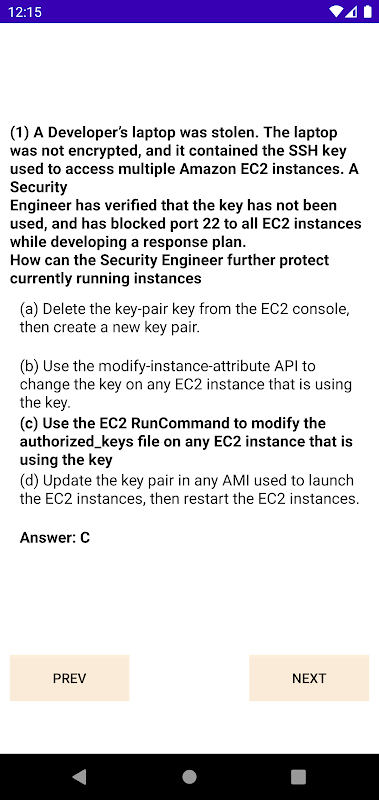 Você deseja se tornar um profissional AWS Certified Security - Specialty (SCS-C02) e está procurando uma maneira abrangente e eficaz de se preparar para o exame? Não procure mais! Apresentando o aplicativo AWS SCS-C02 Exam Practice definitivo, projetado para ajudá-lo a dominar os tópicos do exame e passar com confiança com louvor!