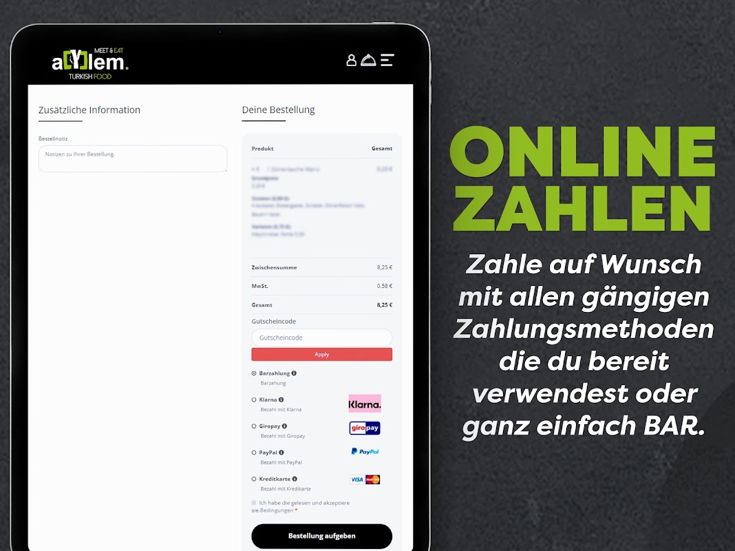A partir de agora você pode facilmente encomendar nossos pratos deliciosos e frescos através do aplicativo. Claro, você também tem a opção de simplesmente pagar online. Configure sua comida favorita de acordo com seu gosto. O que você está esperando? Peça agora e aproveite sua comida.