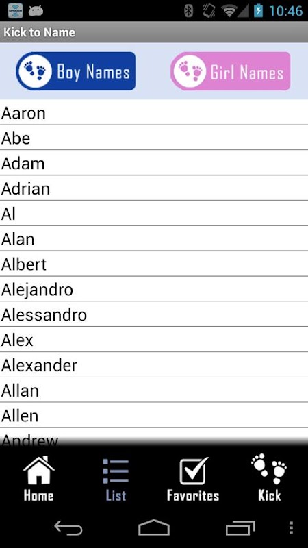 -- Even add your own crazy baby names to the Favorites list (if you somehow cannot find it on the Kick to name baby name generator list.) Then let baby kick his or her choice!