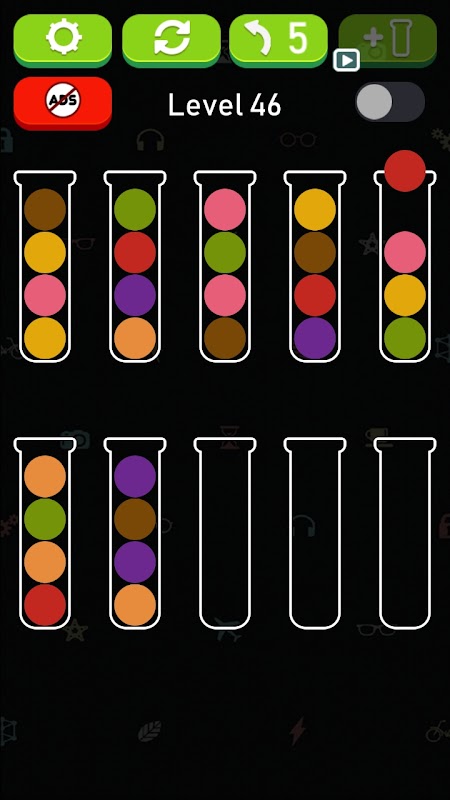 • Tap any tube to move the ball lie on top in the tube to another tube.