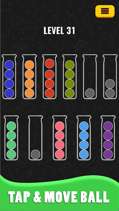 Tente organizar as bolas coloridas nos tubos até que todas as bolas com a mesma cor permaneçam nos tubos. Pense, crie estratégias, preveja e use o quebra-cabeça lógico de classificação de água a cada movimento dos novos jogos de bola.