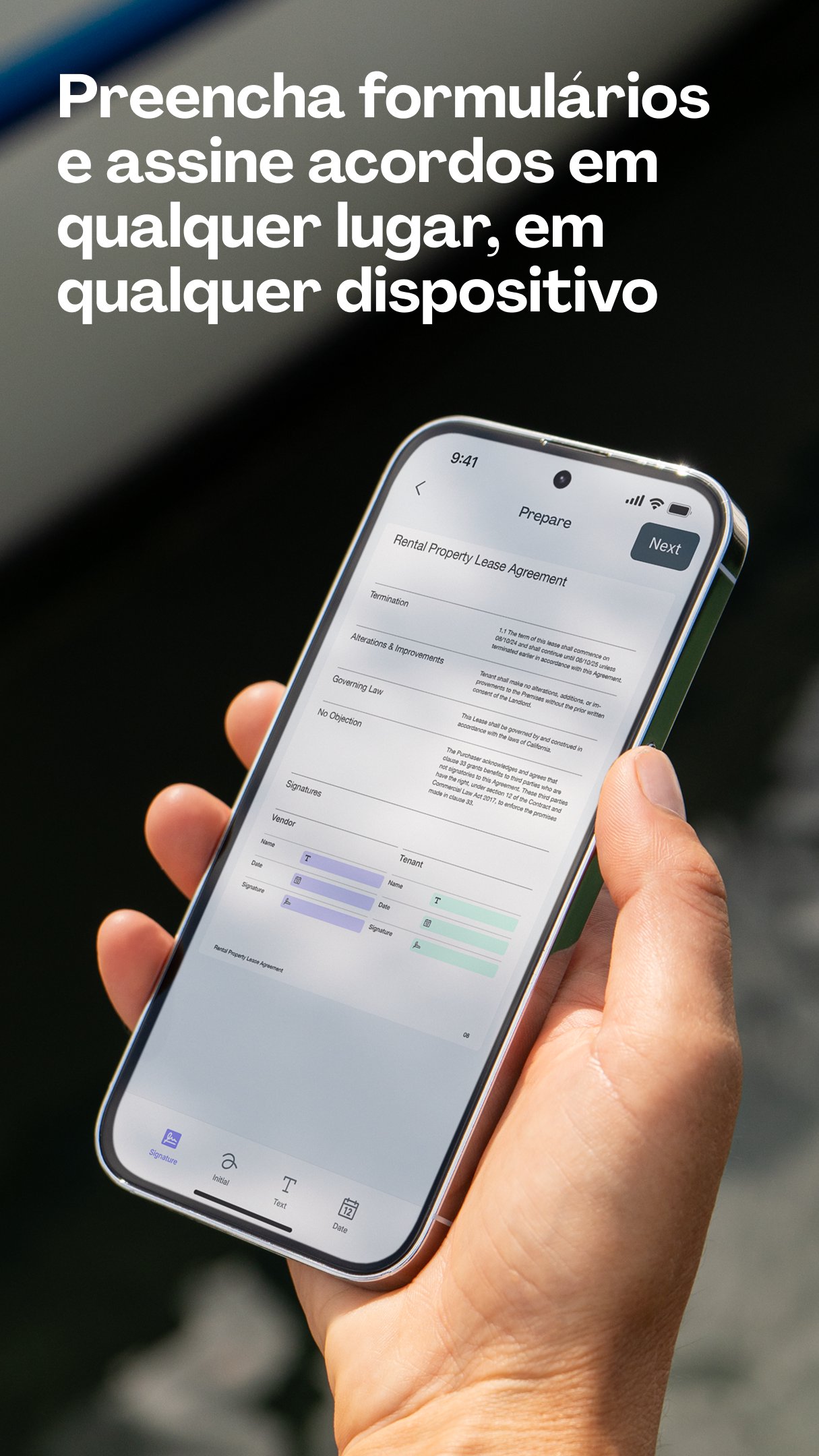 • Preencha e assine em qualquer lugar: Complete formulários e assine documentos diretamente do seu computador, celular ou tablet. Não precisa imprimir nem digitalizar.