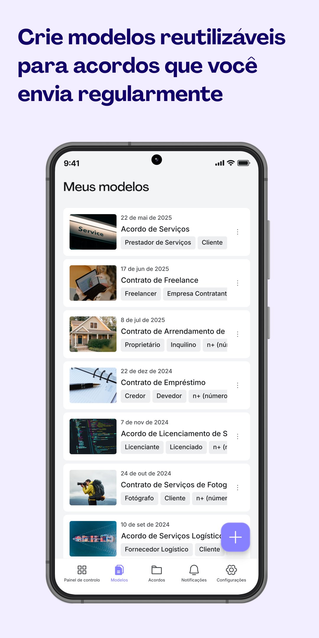 • Economize tempo com modelos: Crie modelos reutilizáveis para documentos que você envia com frequência.