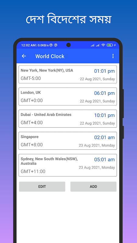 Mais informações এপটির হোম স্ক্রিনে আজকের তারিখ ও বার বাংলা, ইংরেজি ও আরবিতে দেখতে পারবেন। এবং সময় সেকেন্ড সহ দেখতে পারবেন।