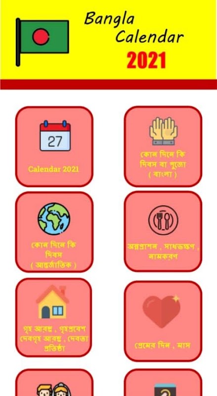 Bangla Calendar 2021 app or known as Bengali calendar 2021 is calendar app for year 1427 for Bengali. Complete with the important date to married, love, enter new home and important date to us.