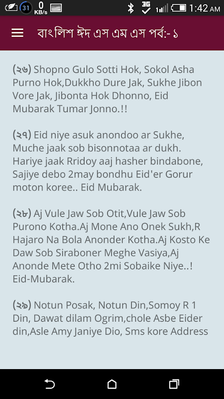 Existem 3 mensagens do Eid Bangla Eid Mubarak no aplicativo, espero que tudo funcione.
