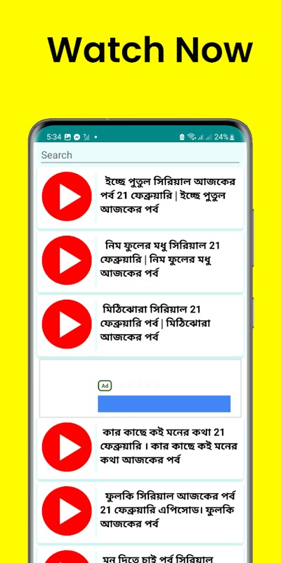 Todos os seus episódios de série favoritos de Bangla estão disponíveis aqui! Nosso novo aplicativo Bangla Serial oferece a oportunidade de assistir aos episódios mais recentes de maneira conveniente.