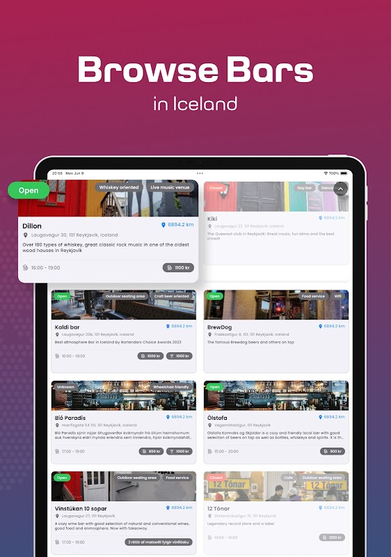Sua Noite, Organize-se. Descubra os Melhores Bares, Eventos e Happy Hours de Reykjavík.