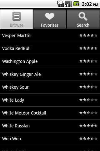 Drinks can be easily viewed, rated, marked as favorite, filtered by title and searched through two different modes. New recipes can be submitted and shared.