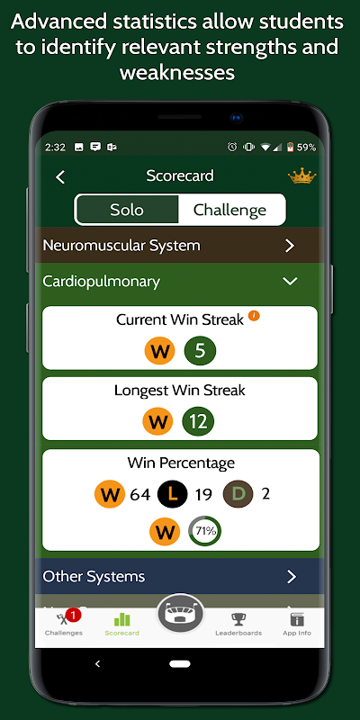 O aplicativo Arena permite que os usuários atuais do Basecamp utilizem nossos jogos competitivos King of the Mountain e Climb, a qualquer hora e em qualquer lugar. Jogue no modo solo ou desafie um colega para uma batalha de raciocínio. Coletivamente, os dois modos de jogo oferecem mais de 5.000 perguntas projetadas para ajudar os alunos a fixar conteúdo acadêmico essencial na memória de longo prazo. As perguntas são apresentadas em cinco Montanhas exclusivas (ou seja, Musculoesquelética, Neuromuscular, Cardiopulmonar, Outros Sistemas e Não Sistemas). Os jogos adicionam um aspecto competitivo ao estudo e envolvem totalmente os alunos enquanto aprendem. Veja como você se sai na competição! Os alunos podem explorar seus dados de desempenho usando o Arena – Scorecard e Leaderboard. Os dados somativos coletados na Arena podem ser usados para direcionar futuros esforços de recuperação. Calce suas botas de caminhada e que os jogos comecem!