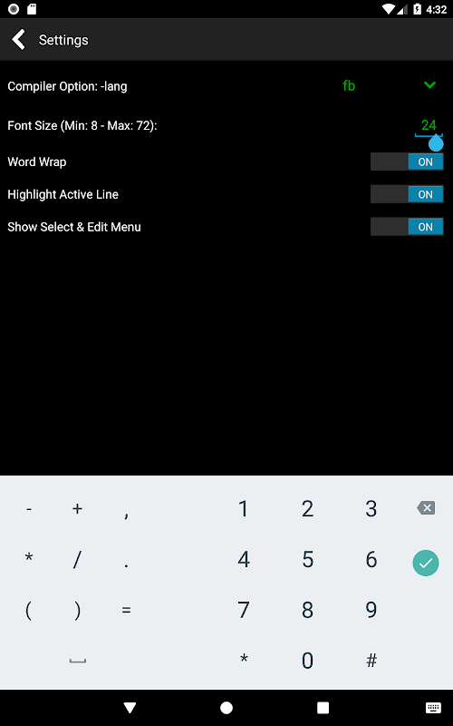 BASIC (Código de instrução simbólica multifuncional para iniciantes) é uma família de linguagens de programação de uso geral e de alto nível, cuja filosofia de design enfatiza a facilidade de uso. Este aplicativo usa o compilador FreeBASIC gratuito/de código aberto (GPL) (https://www.freebasic.net) como backend. FreeBASIC é uma linguagem de programação de alto nível que suporta paradigmas procedurais, orientados a objetos e de metaprogramação, com uma sintaxe compatível com Microsoft QuickBASIC.