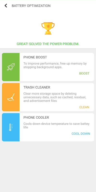 O recurso CPU Cooler pode detectar com precisão a temperatura do telefone em tempo real, aplicativos de aquecimento desativados para resfriar a temperatura da bateria e ajudar a estender a vida útil da bateria.