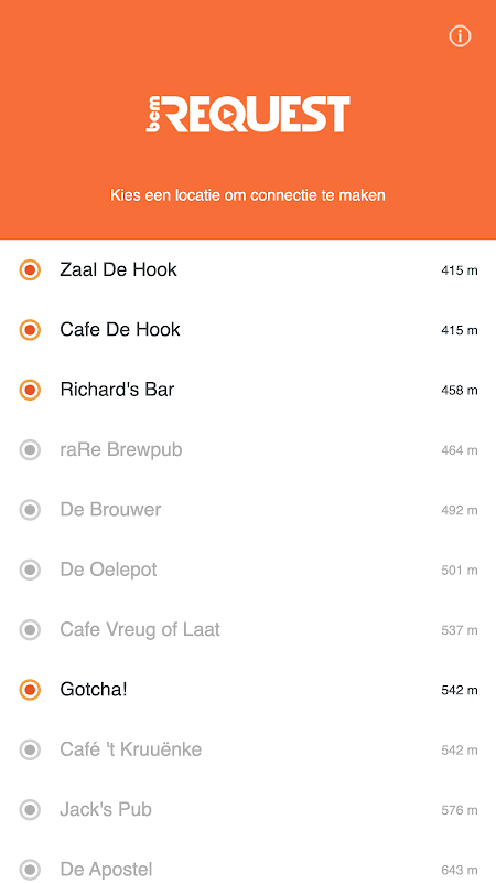 O Pedido BCM pode obter em locais participantes, utilizando um Lite, música ou música multimedia sistema BCM 8000 facilmente solicitar um verzoekje. No aplicativo que você vai ver os locais que participam nas proximidades, e a lista de reprodução que é jogado naquele momento. O aplicativo é totalmente gratuito.