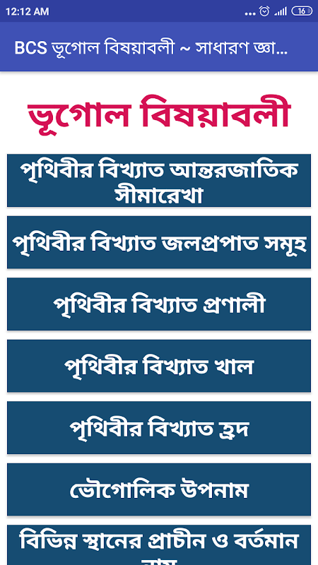 For BCS Preliminary preparation this app will play very important role. This app deals with Geography & Environment Science. You will get some important question and solution on it. Geography & Environment related this BCS app will definitely help you to take your perfect preparation at general knowledge part. For education and book-reference matter, you will be facilitated more by it.