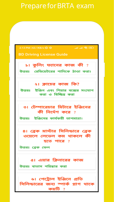 Você pode descobrir perguntas do exame de carteira de motorista em Bangladesh neste aplicativo.
