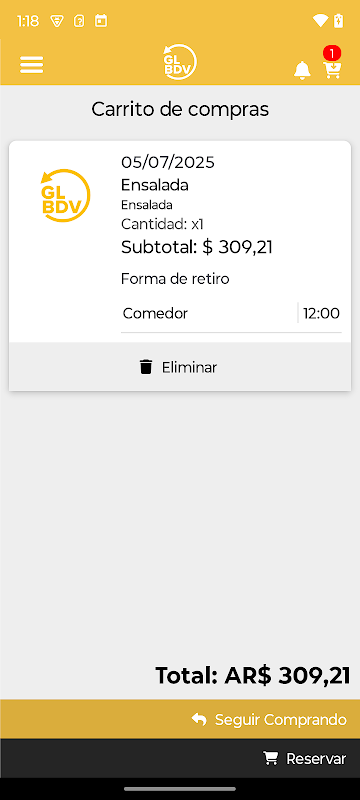 Com o GLBDV, reservar suas refeições nunca foi tão fácil. Navegue pelos cardápios diários, pratos individuais e produtos disponíveis, escolha o ponto e o horário de retirada de sua preferência e pague diretamente pelo aplicativo com o Mercado Pago.