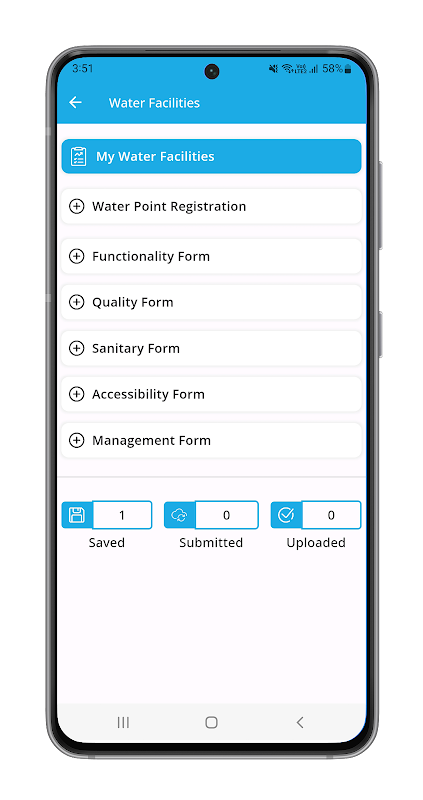 2. Inquéritos personalizáveis: Adapte os seus inquéritos de recolha de dados para corresponder aos requisitos específicos dos seus projectos WASH. Crie e personalize pesquisas com vários tipos de perguntas, incluindo upload de múltipla escolha, texto e fotos.