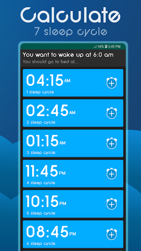 Definir o seu despertar ou a hora de dormir.Fazemos este aplicativo calcular o seu ciclo de sono.
