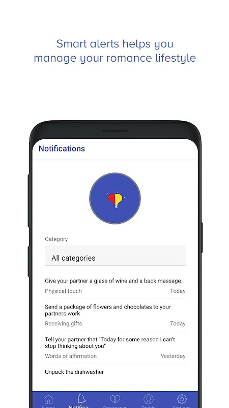 Better Half is designed to help improve your relationship with your partner by providing timely and interesting reminders for things to do with and say to your partner.