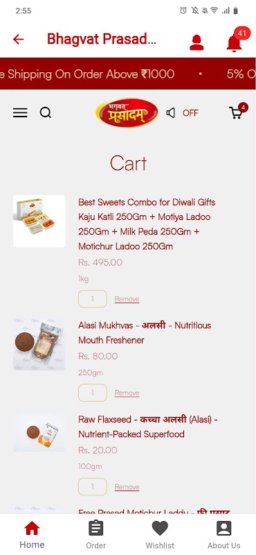 Este é um dos principais empreendimentos de nossa organização "Shree Swaminarayan Gurukul Rajkot Santhan" que, ao fazer pedidos através de um aplicativo móvel sentado em casa, cada devoto pode aproveitar os doces e Namkeen oferecidos ao Senhor Shri Nilkanthvarniji, Shri Radhakrishna Dev, Shri Laxminarayan Dev, Shri Kashtabhanjan Dev etc. em Nilkanthdham Poicha.
