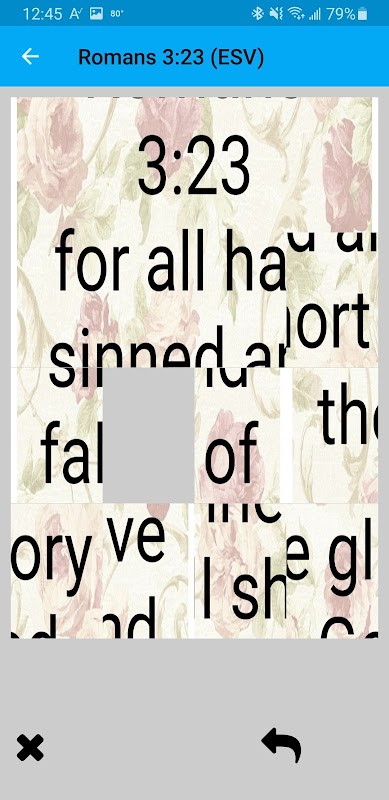 Este programa foi desenvolvido para ajudá-lo a memorizar um versículo bíblico de sua escolha. Você pode configurar lembretes diários. Você pode jogar quatro jogos diferentes com seu verso para ajudá-lo a se familiarizar com ele (quebra-cabeça, correspondência, peças deslizantes, apagamento cronometrado). Você pode criar grupos de versos com seus únicos rótulos. Você pode acessar suas próprias versões (módulos BQ) ou usar as incluídas. Os idiomas inglês, russo e ucraniano são suportados, mas os módulos BQ podem estar em qualquer idioma.