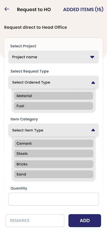 Com este aplicativo, os usuários podem facilmente solicitar os materiais necessários para o site em movimento. Isso ajudará a economizar tempo para manter os registros em um livro-razão e todo o processo demorado assim por diante. Os usuários também podem solicitar as matérias-primas e também o combustível para consumos diários com apenas o toque de um dedo.