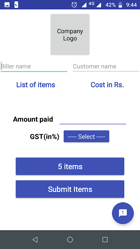 The App is used for Bill Generation. You can add items and it generates the invoice in a form of picture. You can share the invoice in any social media to customers. It also includes the GST in 5 percentages. You can add the GST and it calculates the total bill and can be shared with customers