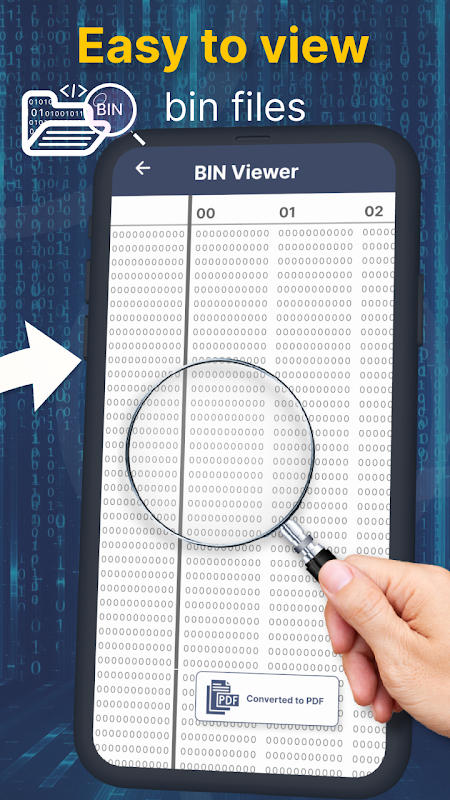 Abridor de arquivos bin - o aplicativo visualizador de arquivos bin pode ajudá-lo a ler arquivos bin e acessar arquivos binários em seu dispositivo Android com o aplicativo leitor de arquivos bin. Abridor de arquivos bin para Android - aplicativo visualizador de arquivos bin, experimente este abridor de arquivos para todos os formatos: aplicativo leitor de fotos bin se você tiver muitos arquivos bin em seu telefone e quiser abri-los. O visualizador de arquivos bin para Android é a melhor ferramenta para visualizar e abrir arquivos binários. Bin File Opener – o visualizador de arquivos bin tem uma interface amigável que torna muito simples abrir e visualizar arquivos binários. Gostaria de converter sua foto para formato binário ou código? Tente usar este vídeo de abertura de arquivo bin. O principal motivo para criar este visualizador de abertura de arquivos para Android é converter qualquer foto ou documento em um extrator de arquivo bin.