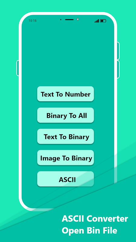 ASCII Converter & open bin File é um aplicativo binário eficaz para hexadecimal, binário para octal, binário para decimal e binário para hexadecimal que permite inserir qualquer número decimal e convertê-lo em números binários, hexadecimais e octais. O aplicativo tradutor binário pode abrir todos os arquivos bin online e offline.