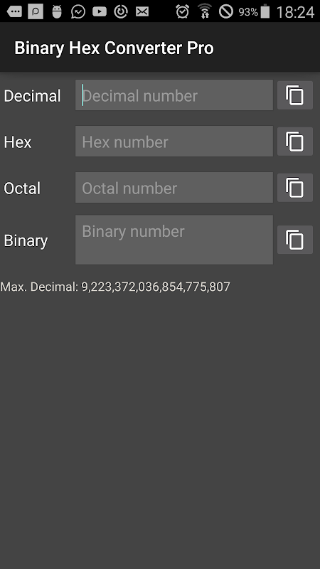 Binary Converter Pro is a simple application to perform transformations between the most used computer numbering systems. The application supports the following numbering systems: