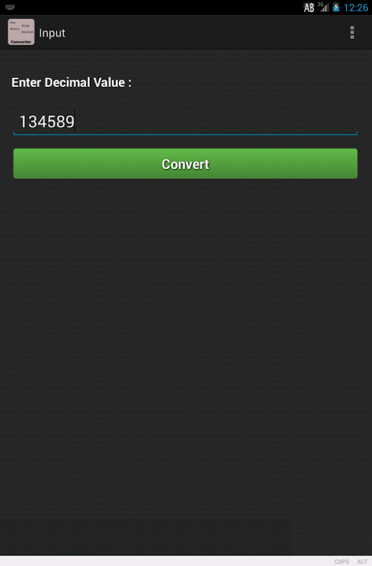 This app is so designed that you can input the number in any of the number format (e.g decimal 2) and it will convert it to the rest of the formats (i.e. Binary 10, Hexadecimal 2, Octal 2)
