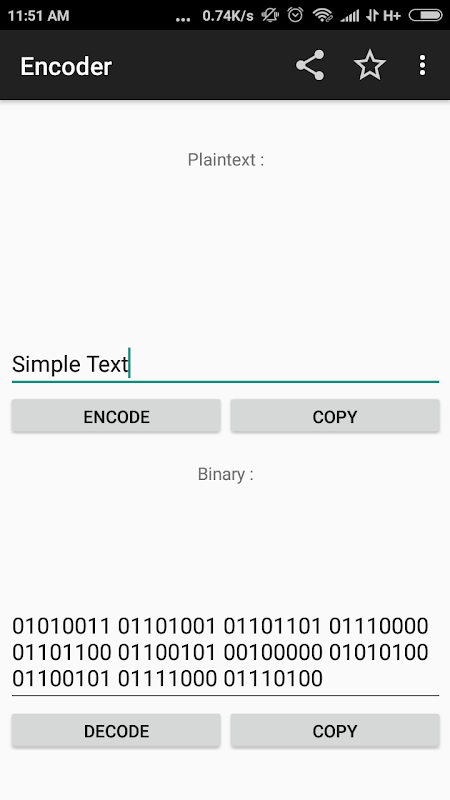 Here you can do conversion from simple text and encode it into a Binary series of 1's and 0's.