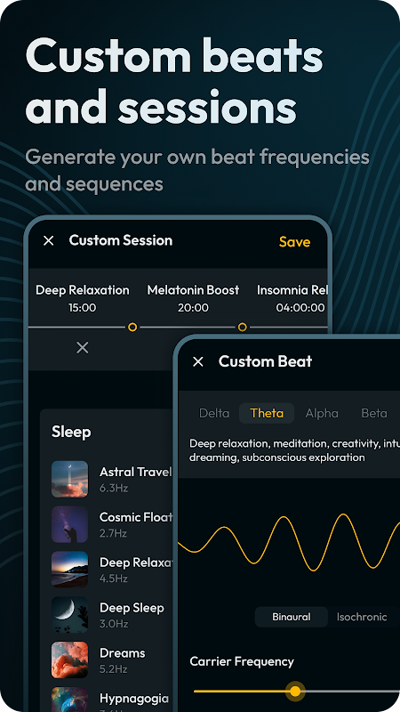 - Crie suas próprias ondas cerebrais Delta, Theta, Alpha, Beta e Gamma personalizadas