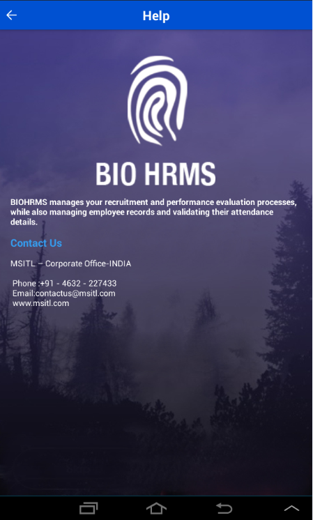 BIO HRMS is an application to manage human resource activities in any type of organization. BIO HRMS is well designed to manage any employee's attendance data in real time. Hence, BIO HRMS is an important and essential tool for each and every organization. This app can forecast your business success status and give an overview of your future business. Businesses will have to keep a track of employees, this being the main concern of the employer. Monitoring attendance helps in the long term for a business, as an employer will be able to tell which employees arrive early, which arrive late and who has the most absences without any valid reason. This BIO HRMS app can help an employer in deciding which employees are most suitable to work in the business and who are not fit for the job.