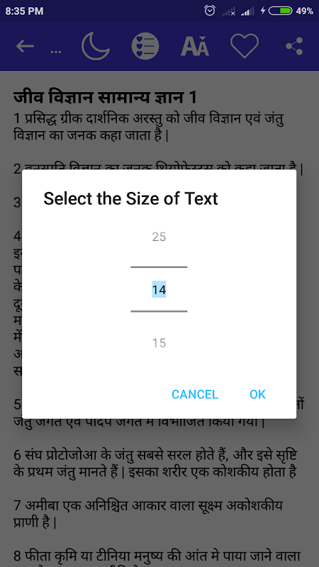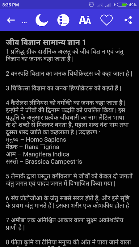 This app has general knowledge questions and answers of Biology in Hindi language.