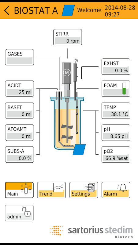 Com o app você começa BIOSTAT® Um total de funções de monitorização e controlo nesta página para o seu BIOSTAT® A. Graças à interface de usuário intuitiva, a operação do BIOSTAT® A é ideal para iniciantes, reduz erros de operação e agiliza o treinamento. Operação usando um tablet ou smartphone é uma moda oferecidos no pacote avançada e permite monitorar e controlar a BIOSTAT® A em movimento - em laboratório, no escritório ou mesmo em casa.