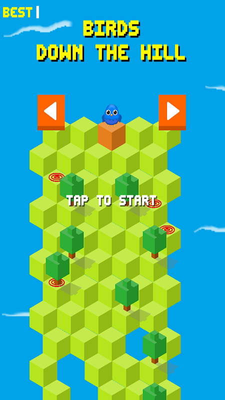 Start the game with our yellow and sweet little bird and start to go down the steps without any obstacles.