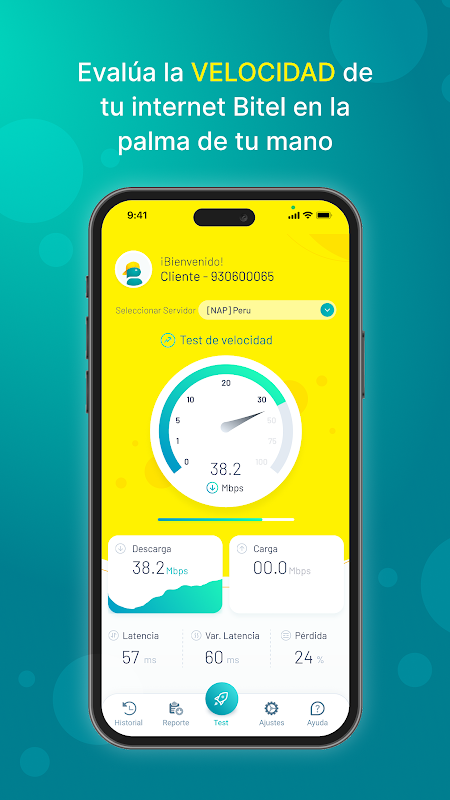 O Teste de Velocidade Bitel oferece os seguintes recursos: