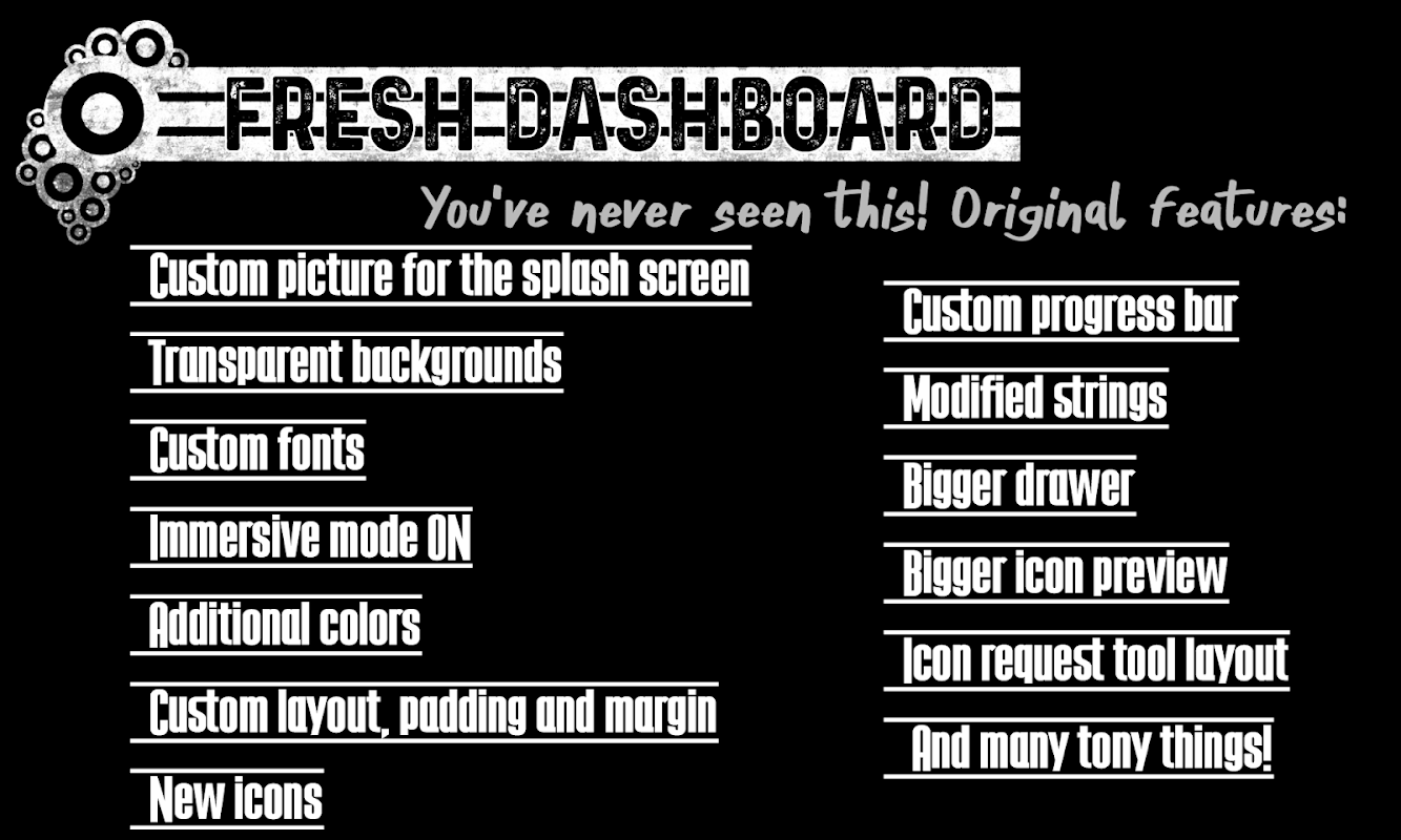 Versão ajustada do painel do Candybar: tela inicial, fontes, modo imersivo, layout, ícones personalizados, visualização maior de ícones e muitas pequenas coisas... Em outras palavras, uma nova experiência de usuário! :-)