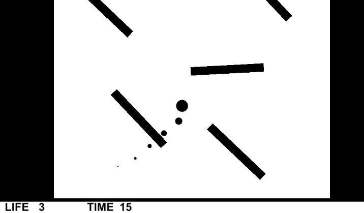 Uma bola, um tempo, um fundo branco e coisas pretas.