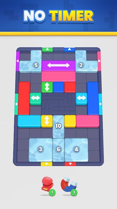 Deslize para mover, e pronto! Os controles intuitivos facilitam o foco exclusivo na resolução do quebra-cabeça. Use impulsionadores úteis como Congelamento Temporal, Ímã e Soco para superar até mesmo as grades mais difíceis. Com centenas de níveis, Block Away fará você voltar para mais.