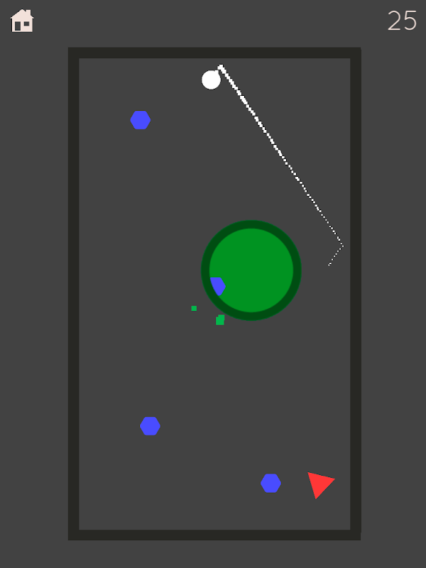 3. Para fazer isso, você deve desenhar uma linha deslizando o dedo na tela para mover a bola principal do quebra-cabeça para essa direção. Ele se moverá e saltará contra os barras / bloqueadores de acordo com a lei da física, e ele irá soltar as bolas / hexágonos em seu caminho.