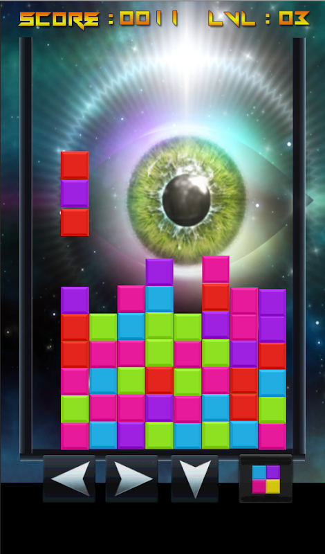 The goal is to have as few block on the screen, you can eliminate them by groups of three same color, as a result of either vertical or horizontal.