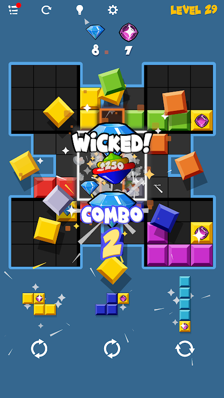 Gire as peças e arraste-as para completar linhas, colunas e caixas!