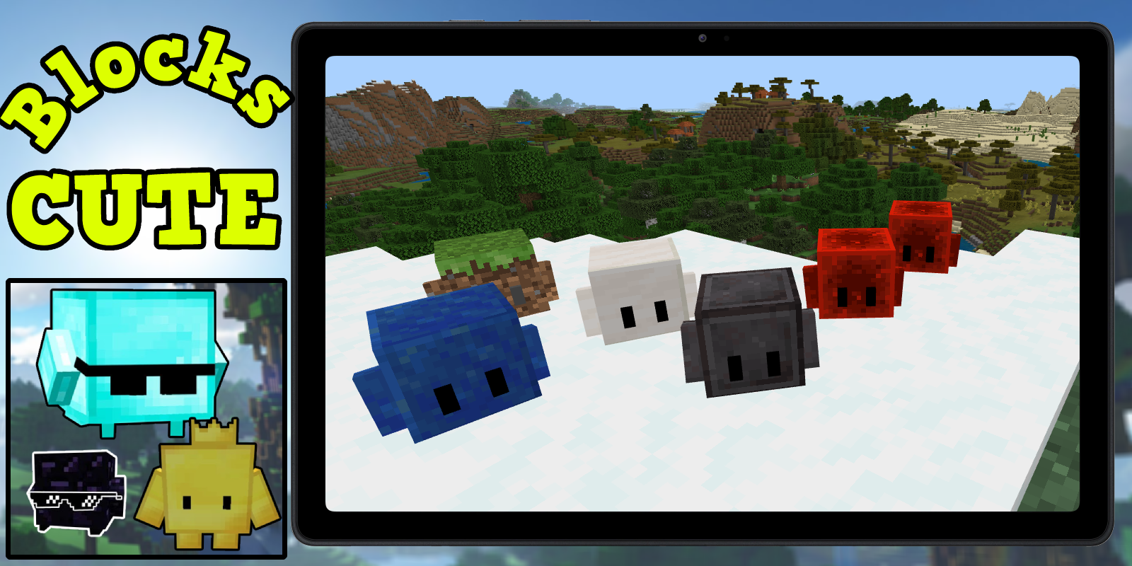 O mod Blokkit é a mais fofa criatura em forma de bloco viva, com braços e pernas. Eles são projetados para criar uma atmosfera amigável. Eles podem ser domesticados. No total, quinze criaturas de blockkit foram adicionadas, todas elas de tamanhos e aparências diferentes. Cada um tem sua própria pele, há tanto ouro pacífico quanto TNT aparentemente perigoso. Lista de Blokkit: Blocos de Obsidiana, Madeira, Abóbora, Pedra Vermelha, Quartzo, Netherita, Terráqueo, Ferro, Gelo, Diamante e Desperdício. Todos parecem muito amigáveis, mas não têm superpoderes. É muito simples de domesticar, clique nele com uma maçã e no topo surgirão corações vermelhos, isso significará que a domesticação foi bem-sucedida e agora ele irá te seguir e realizar alguns comandos como ficar, sentar e seguir. Eles são capazes de evoluir e subir de nível. Para vê-los e experimentá-los, crie um mundo no modo criativo e gere todos os blokkits. Esses mobs surgem aleatoriamente em todos os biomas.