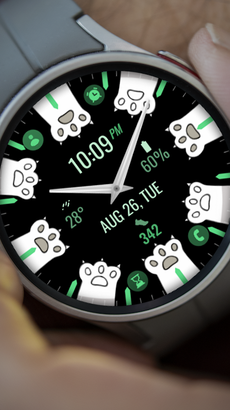 Mostrador de relógio híbrido com patas de gato fofas para amantes de gatos
