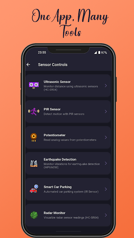 - Visualização de dados do sensor: monitoramento em tempo real para ultrassom, PIR e outros.