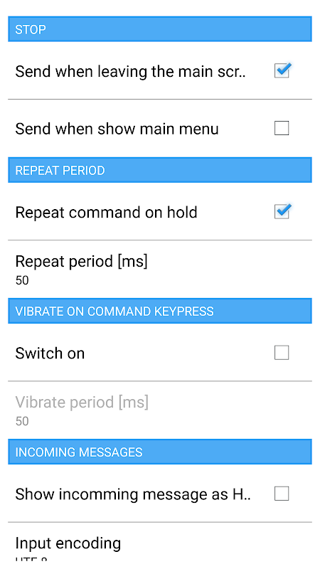 Possibilidade de definir a repetição dos comandos enviados ao manter pressionado um botão e seu período