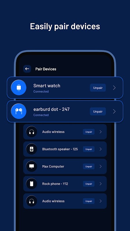 Gerencie dispositivos Bluetooth usando widgets, emparelhe seus dispositivos e personalize widgets.