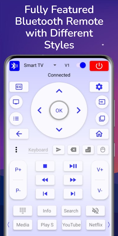 Aplicativo de controle remoto Bluetooth para Smart TV Android com teclado para facilitar a digitação